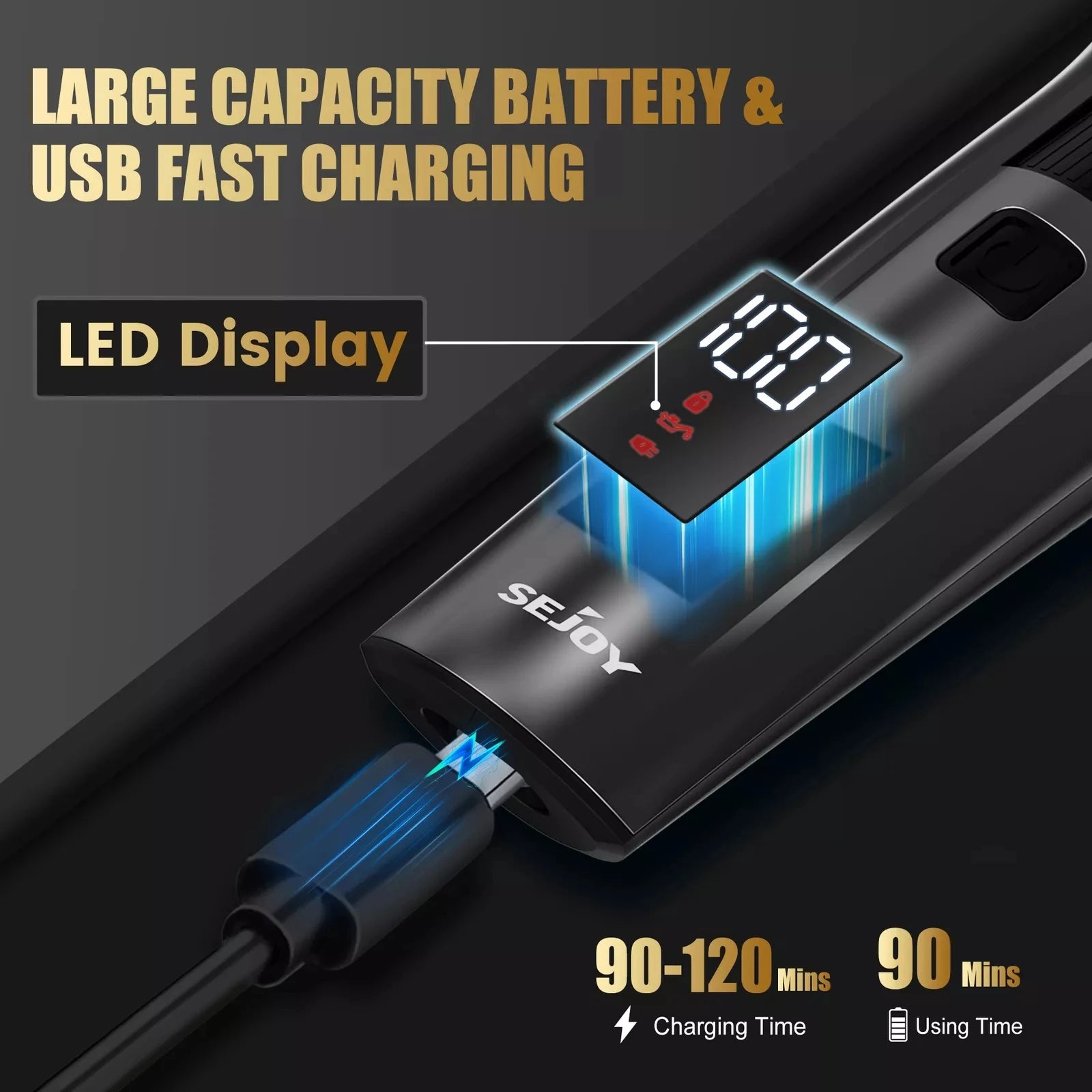 【High-Tech Efficiency】Rechargeable barber clipper for hair cutting is designed for the modern man. With an advanced LED display and TYPE-C charging, you're always informed and powered up. The robust 800mAh battery ensures a solid 1.5-hour performance from just a two-hour charge. And with the handy travel lock feature, you're assured that your clipper remains off and safe while in transit.