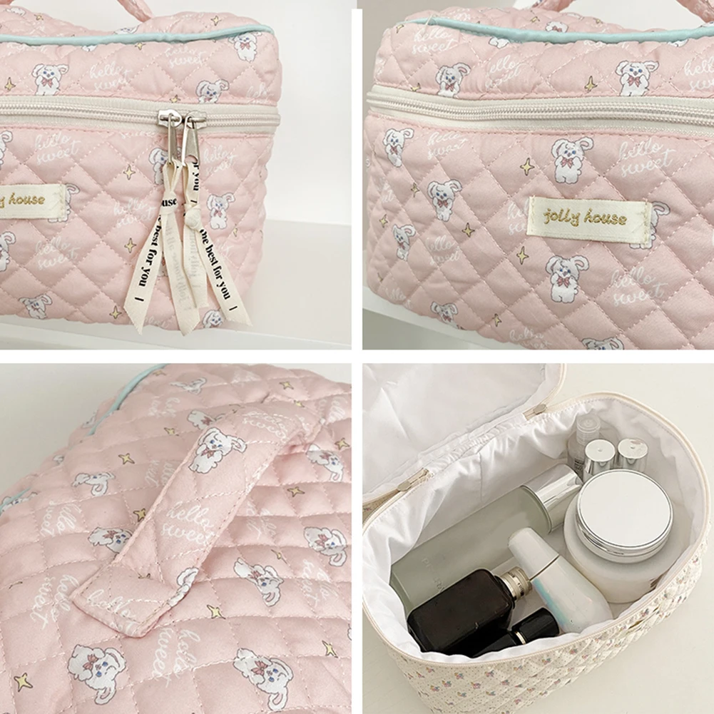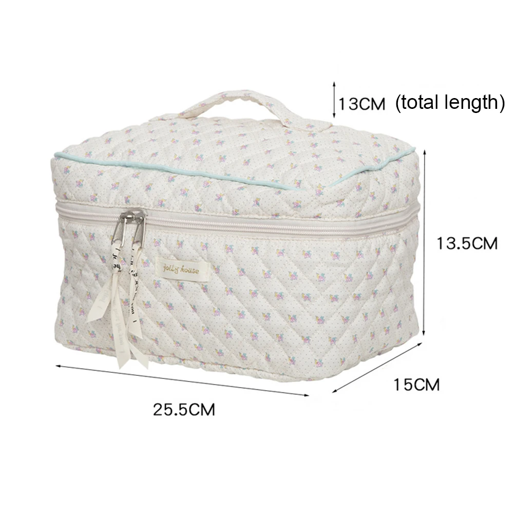 Cute Cosmetic Bag Portable Zipper Makeup Pouch Quilted Clutch Handbag Large-capacity Floral Print for Ladies Girl