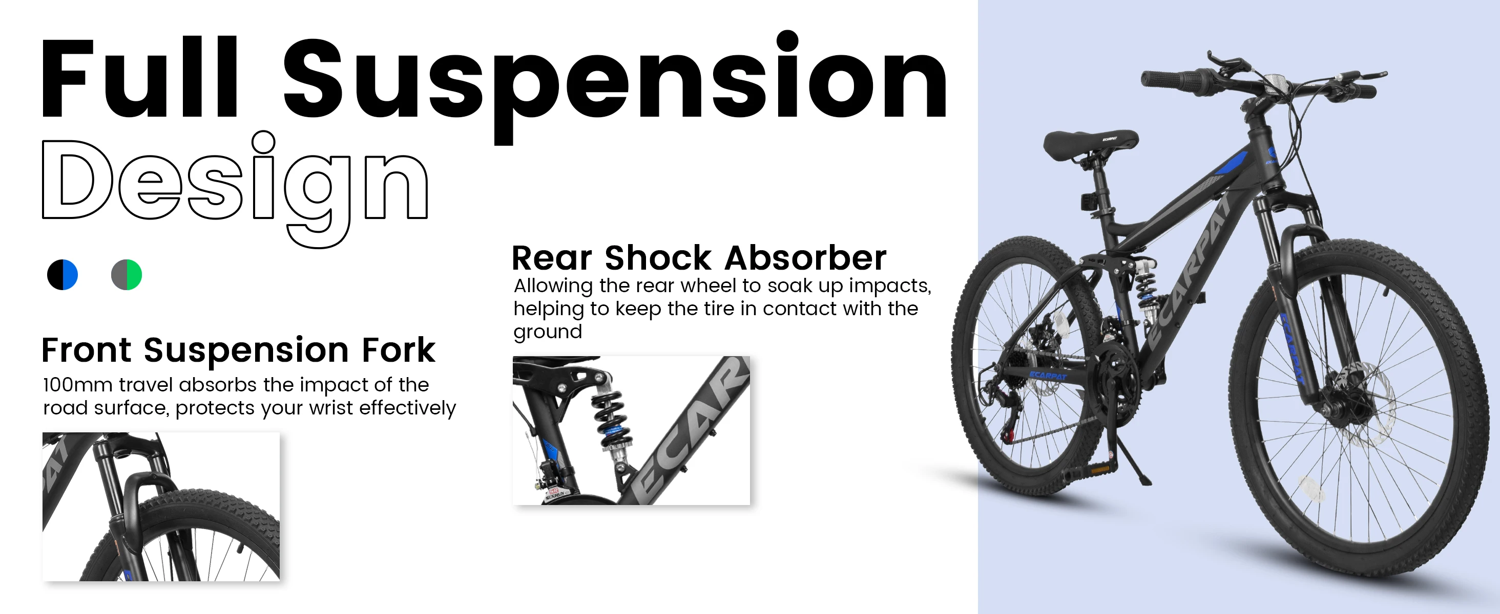Ecarpat Dual Full Suspension Mountain Bike 24/26/27.5 Inch, Mens Women Teenagers Boy Girl Mountain Bike, 21-Speed Disc Bicycles