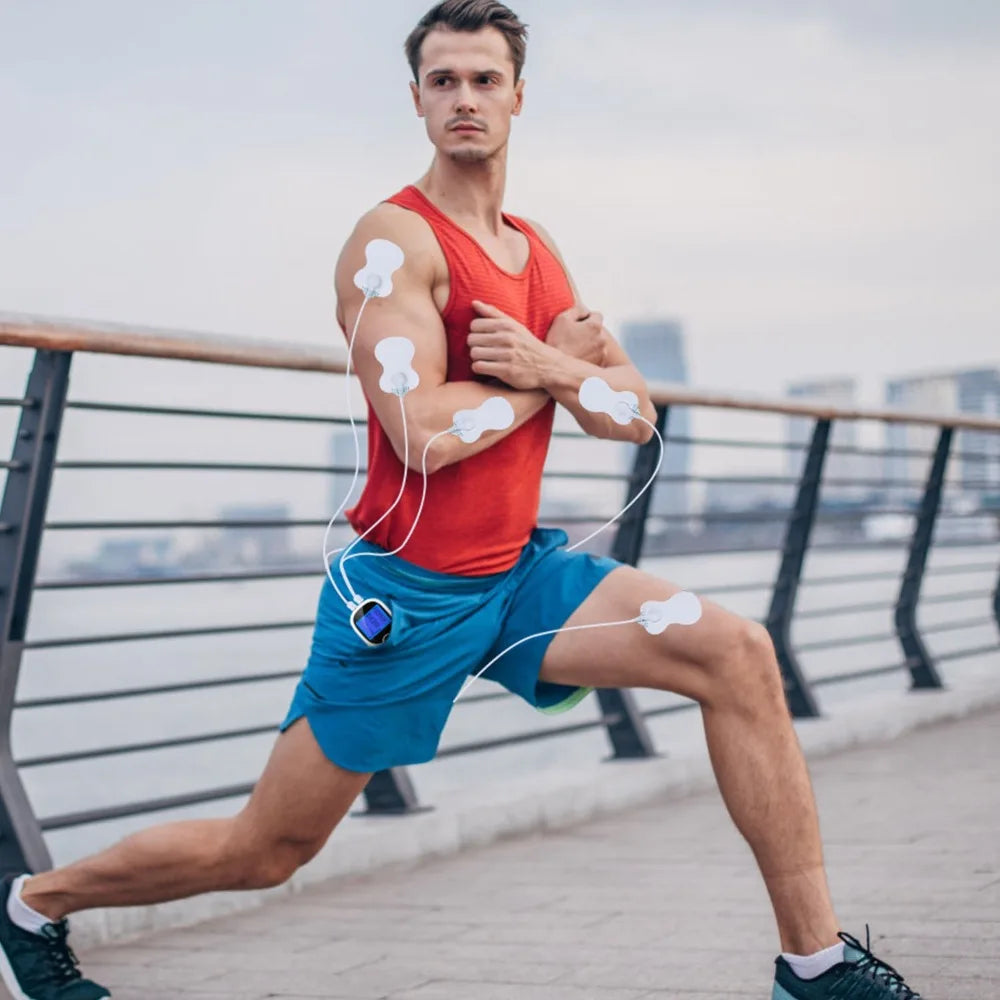 Electric Muscle Stimulator Dual Channels Pulse Massager Pain Relief Therapy Device with Electrode Pads Wires