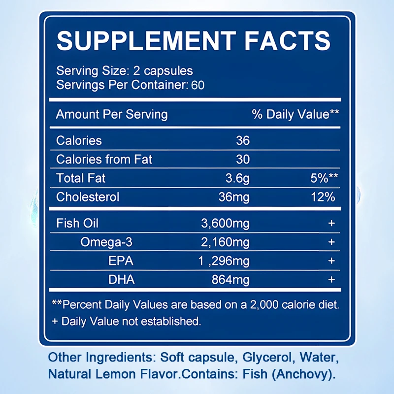 *Helps promote overall health: Our super strength fish oil contains the richest omega-3 fatty acids to help support your eyes, skin, cognitive and overall health, and strengthen your immune system. Omega-3 is essential for maintaining and protecting the integrity and function of brain nerve cells. It participates in the transmission of neurotransmitters, promotes the repair and regeneration of nerve cells, and may relieve psychological stress and improve memory and mental state