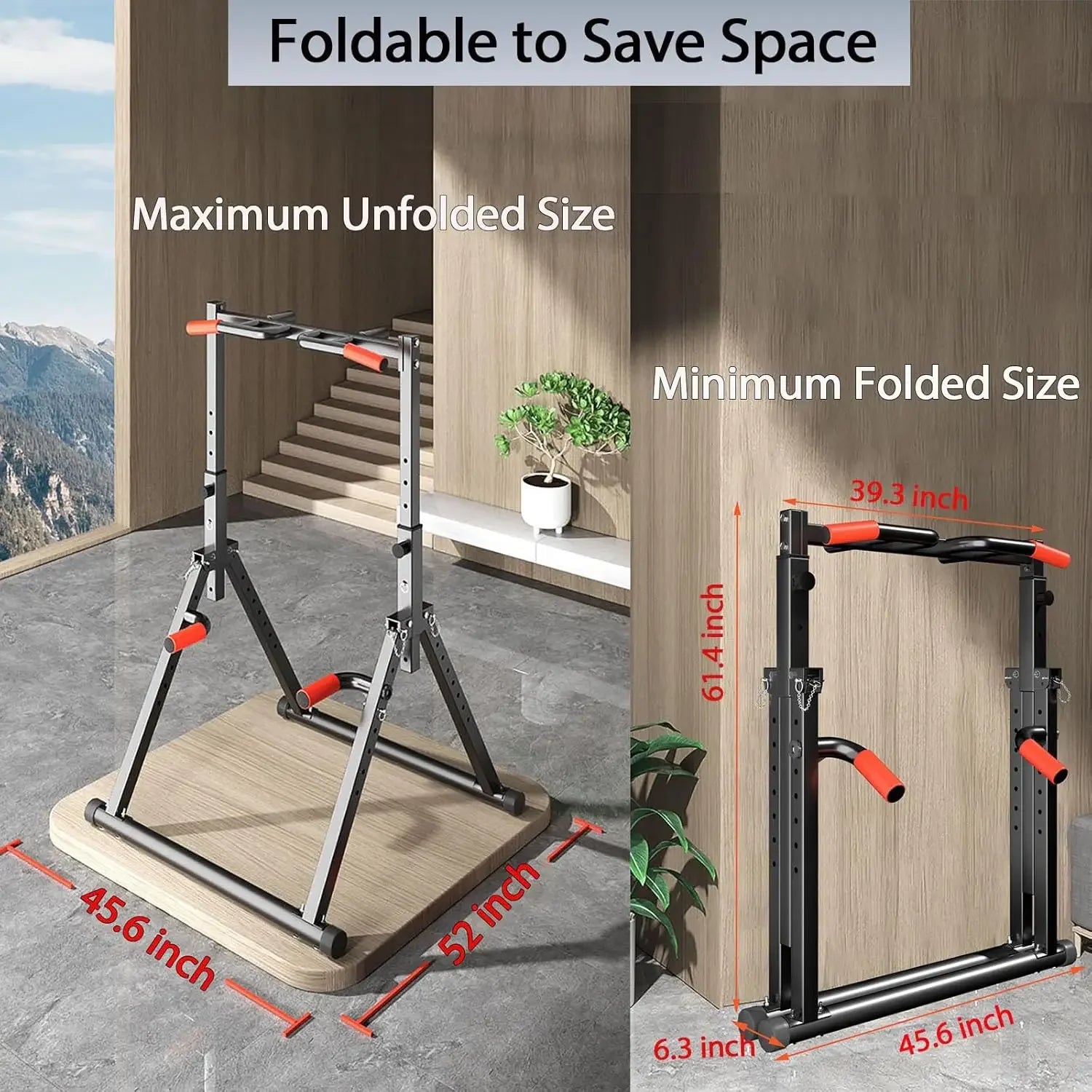 Foldable Power Tower Pull Up Bar Dip Station Adjustable Multifunction Workout Pull Up Tower Station Gym Strength Training Equipm
