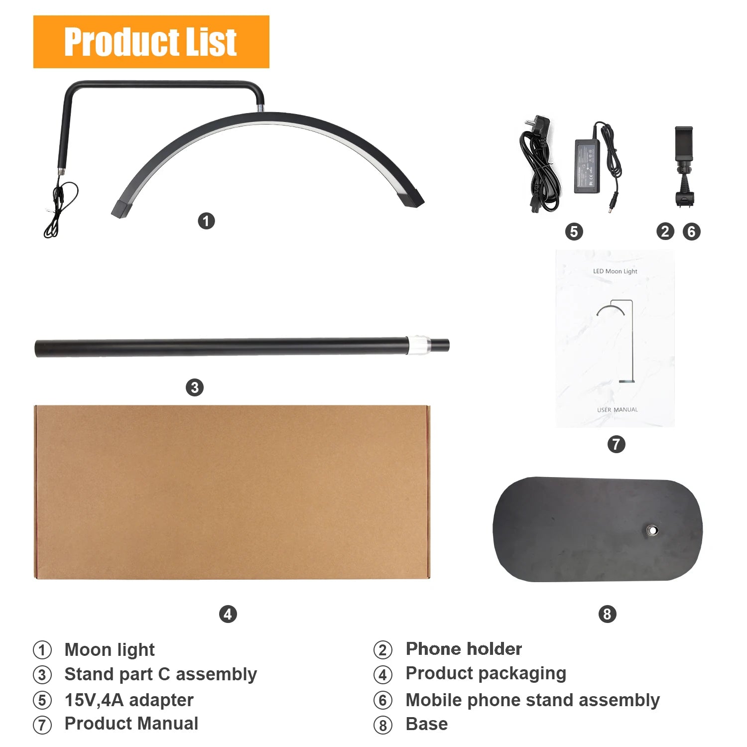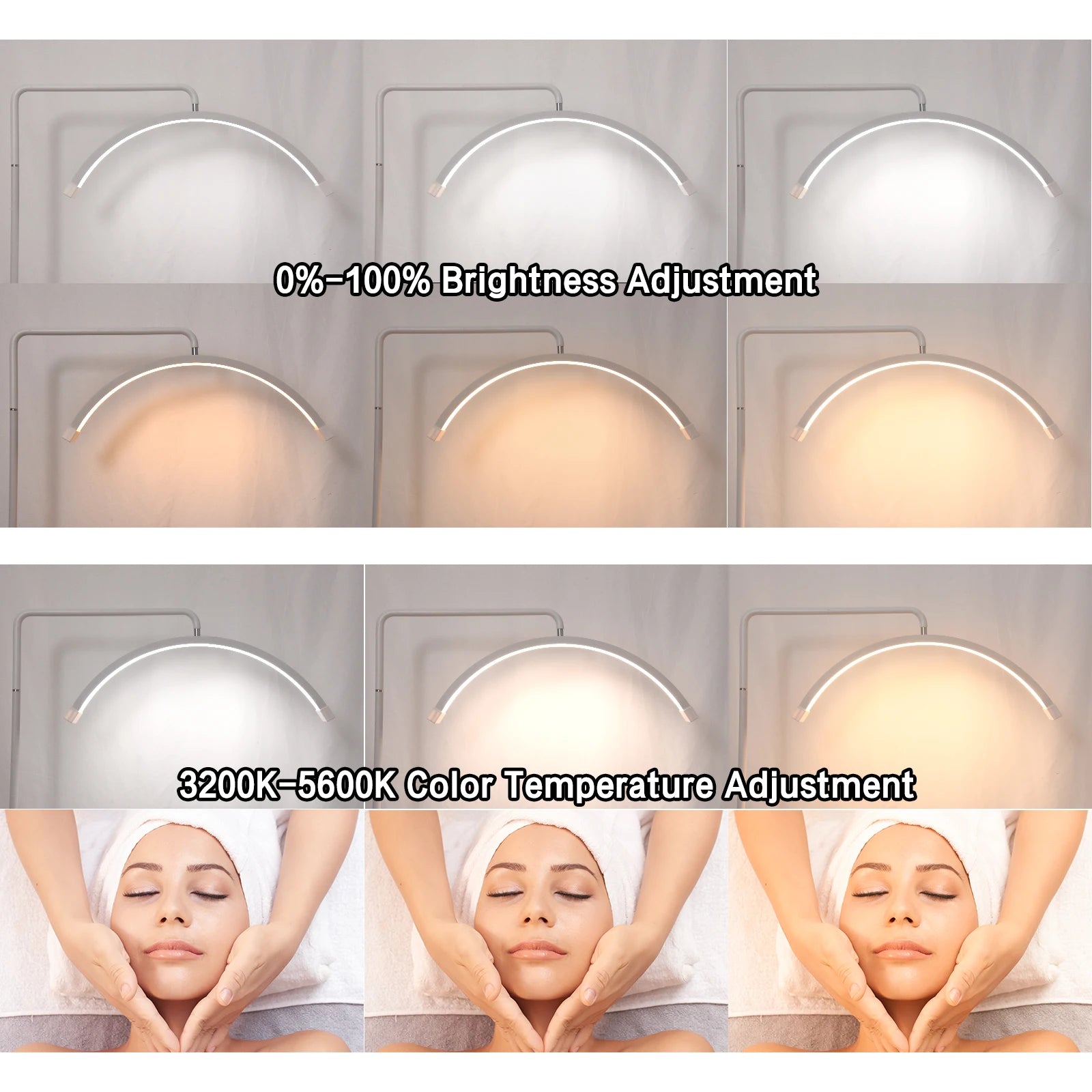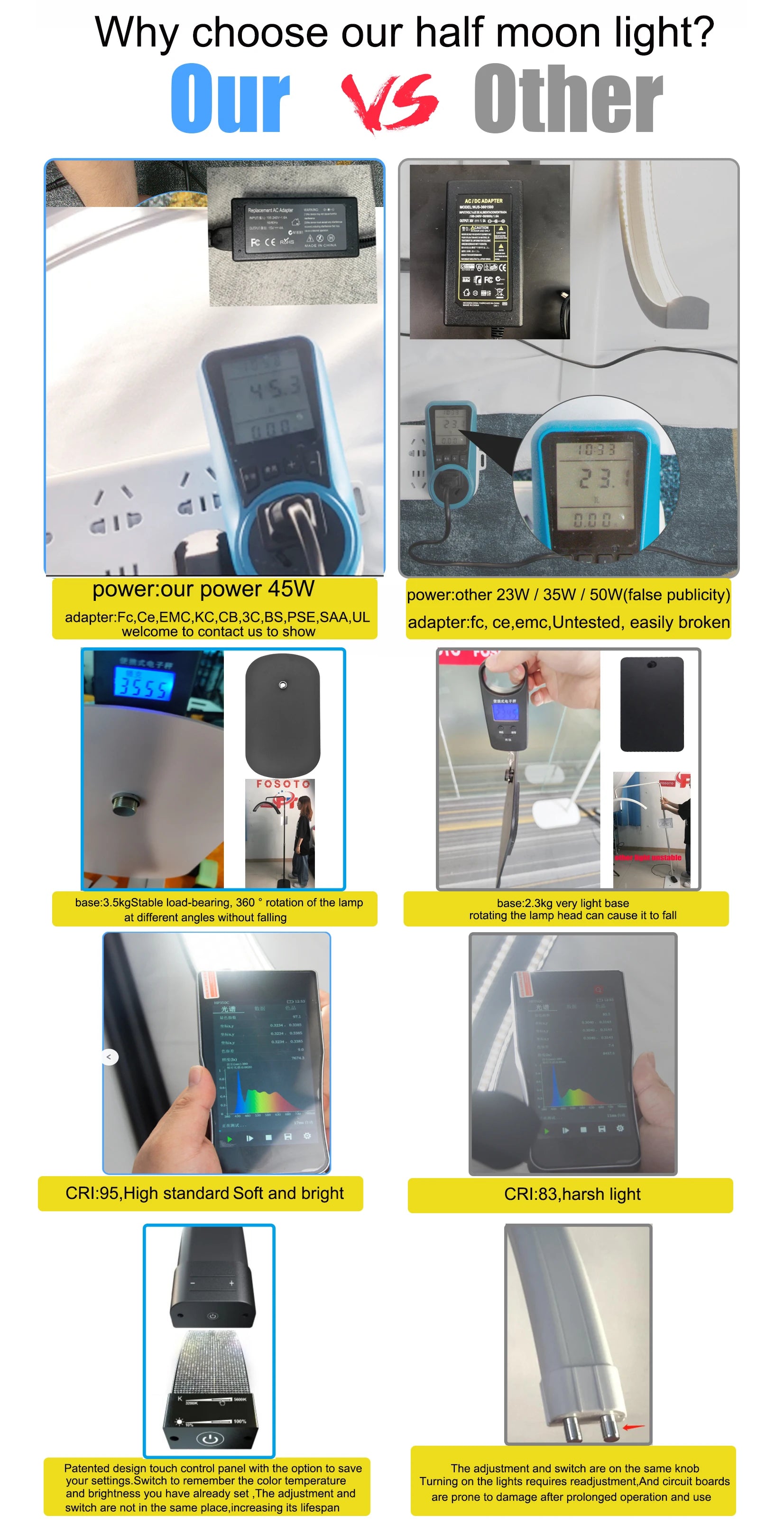 【Half-moon Light】fosoto special half-moon shape design with floor stand, It will make your work without any shadow obstruction.with 320pcs high-quality lamp beads, 45W high power and 95+ high color rendering.suitable for lash,eyelash,tattoo,desktop vlog, beauty salon live streaming, beauty project,nail enhancement etc.