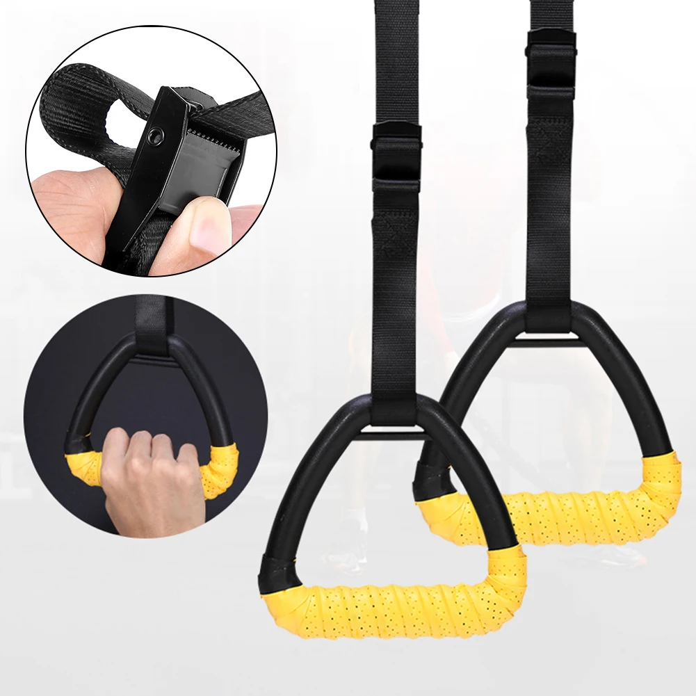 3. High-Strength Steel Buckles: The pull up exercise rings are equipped with and break-resistant steel buckles. The adjustable strap length design allows for convenient customization, ensuring a secure fit. The smooth surface of the buckles prevents damage to the straps, ensuring longevity.