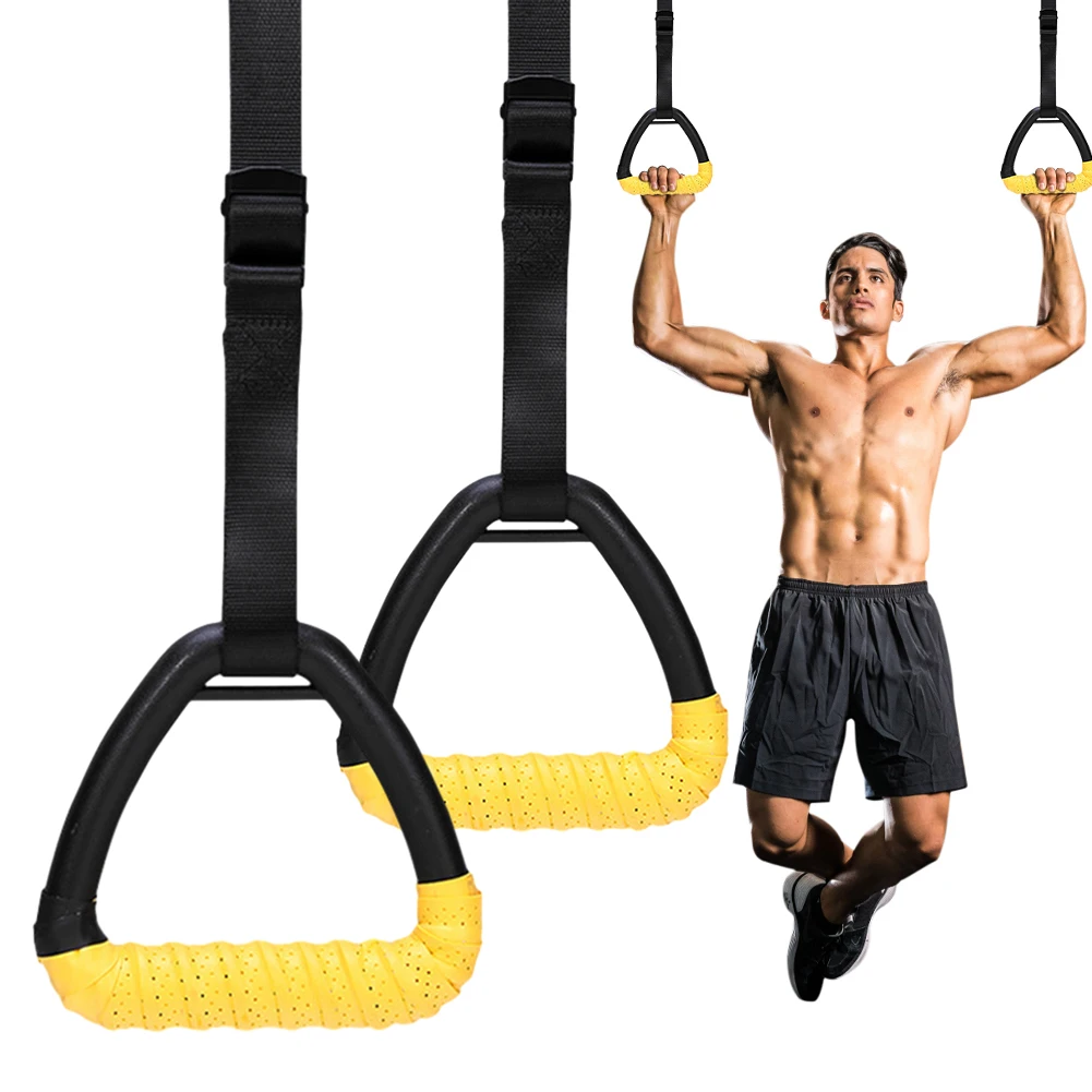 2. Nylon Straps: The gym rings feature stable nylon straps, intricately woven with a nylon-like material that is highly resistant to breakage. These straps can withstand heavy loads, providing reliable support and safety during exercises.