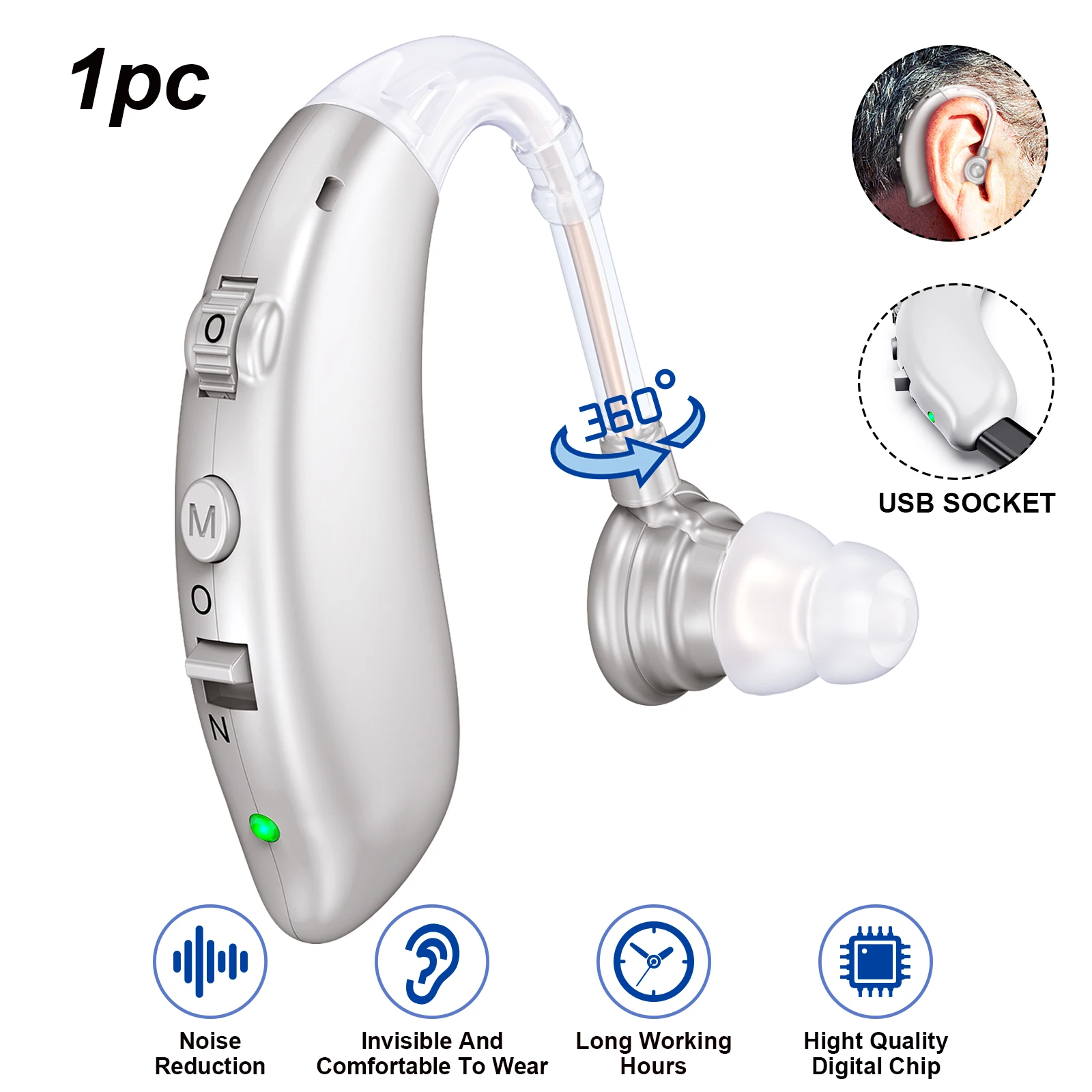Invisible Senior Rechargeable Hearing Amplifier, Behind-The-Ear Hearing Aids, Noise Cancelling Sound Amplifier