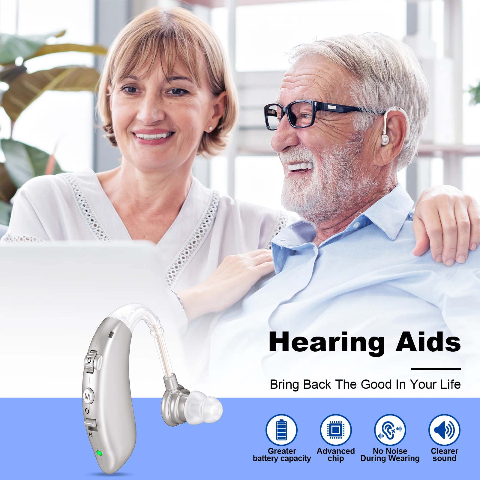 The hearing amplifier employs the upgraded digital chip and advanced acoustic technology to deliver clear, natural sound, ensuring you don't miss any wonderful sounds in your daily life.