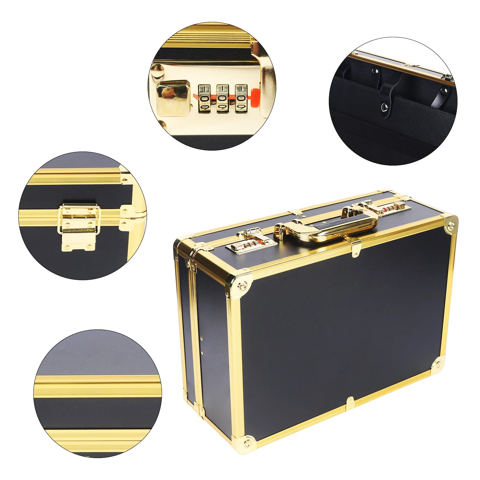 Metal corner design, thick nail reinforcement, so that the box is not deformed and strong Double password buckle design can better protect the safety of the contents of the box.