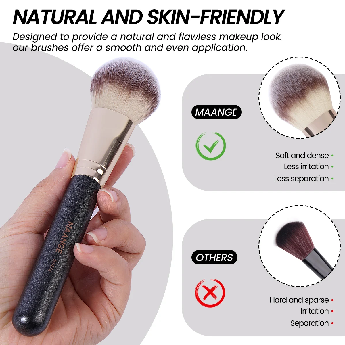 【Soft & Quick-Dry Bristles】: The bristle is made of durable synthetic fiber, which evenly and efficiently sticks to catch the powder, Easy to care for, clean and quick-dry.