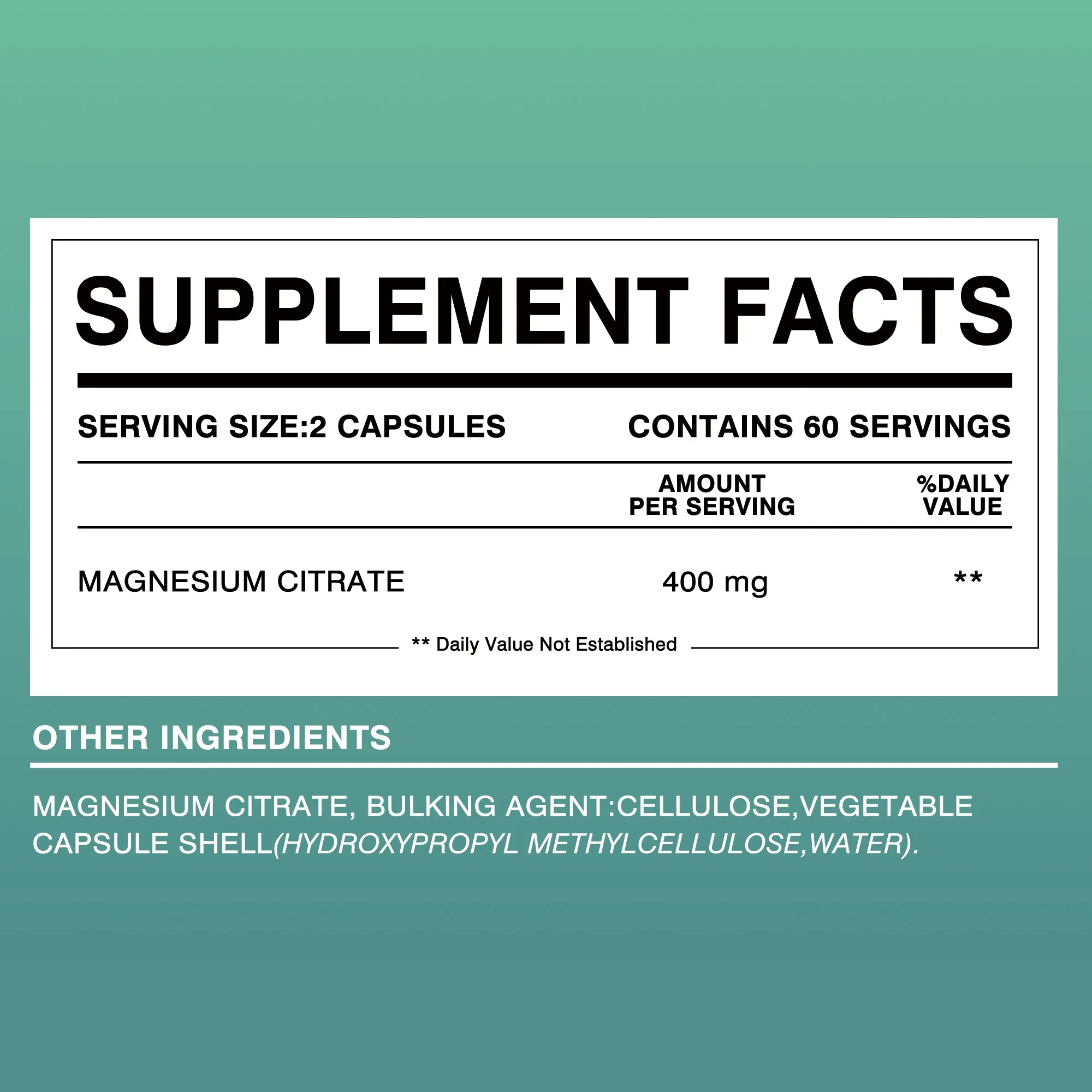 Magnesium Citrate - Supports Cardiovascular and Heart Health and Relieves Muscle Soreness - 120 Capsules