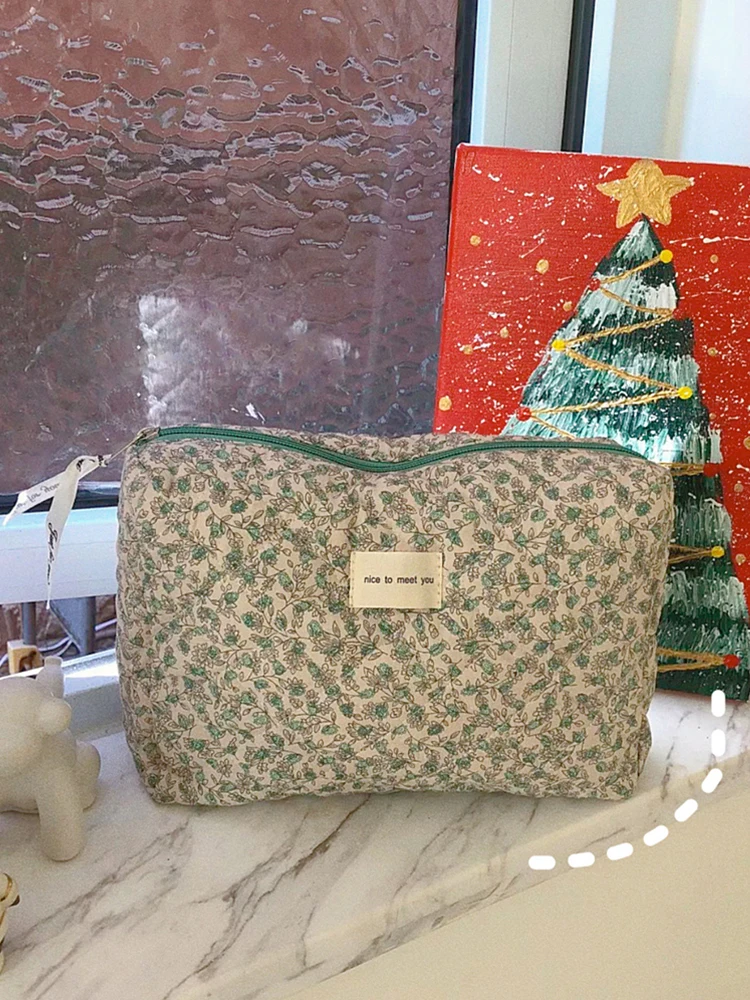 Make Up Handbags Flower Prints Soft Cotton Travel Organizer Travel Portable Large Capacity for Women Girls Wallet Purse