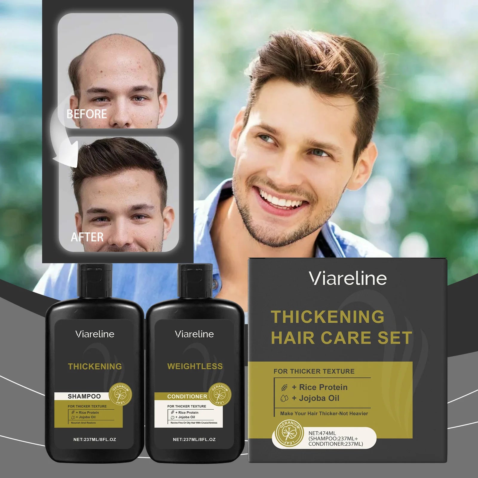 Men Hair Care Set Improve Dryness Roughness Non-greasy Fluffy Thickening Nourishing Volumizing Hair Shampoo and Conditioner Set
