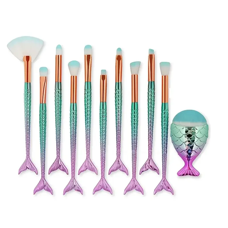 Mermaid Makeup Brush Sets Soft Nylon Bristles Foundation Powder Eyebrow Eye Shadow Eyeliner Blush Beauty Brushes