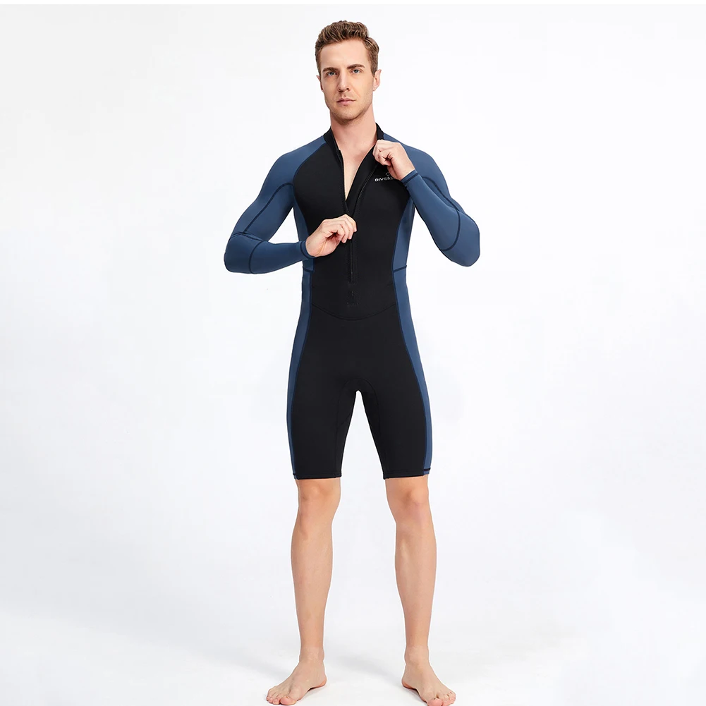 Neoprene Diving Protection Clothes with Zipper Mens Snorkeling Surfing Swimsuit Anti-scratch Cold Proof Warm Outdoor AccessoriesFeatures: 1. High quality material: The main body area is made of 1.5MM chloroprene rubber, which can delay body temperature loss. The main body area is continuously and efficiently protected from cold and warmth, while increasing the space for both hands to move and increase elasticity. You can enjoy underwater activities for a longer time. 2. Sunscreen fabric: UPF 50+sun resistant, and prevents direct UV exposure from damaging the skin. It can be sun protected both above and below water, quickly drying and soft, lightweight and breathable, and does not tan. 3. Comfortable: Four way elasticity, which can be stretched freely in four directions and has good rebound, providing you with a comfortable wearing experience and efficient rebound, allowing you to move freely. 4. Front zipper design: Easy to wear, sturdy and . The inside of the zipper is equipped with a scratch resistant skin guard. 5. Anti scratch: The material is wear-resistant, anti scratch, and resistant to harmful organisms such as jellyfish in the sea, as well as sharp objects such as sand and stones, making it safer for you to play on the water. Specification: Item Type: Wetsuits Sport Type: swim Gender: MEN Model Number: Wetsuits Fit: Fits true to size, take your normal size Main material of the product: Neoprene rubber+ Product color: blue Dimensions: (optional) M, L, XL, XXL, XXXL Packaging size: 310x260x10mm/12.2*10.24*0.39inch Product gross weight: 450g-520g Note: