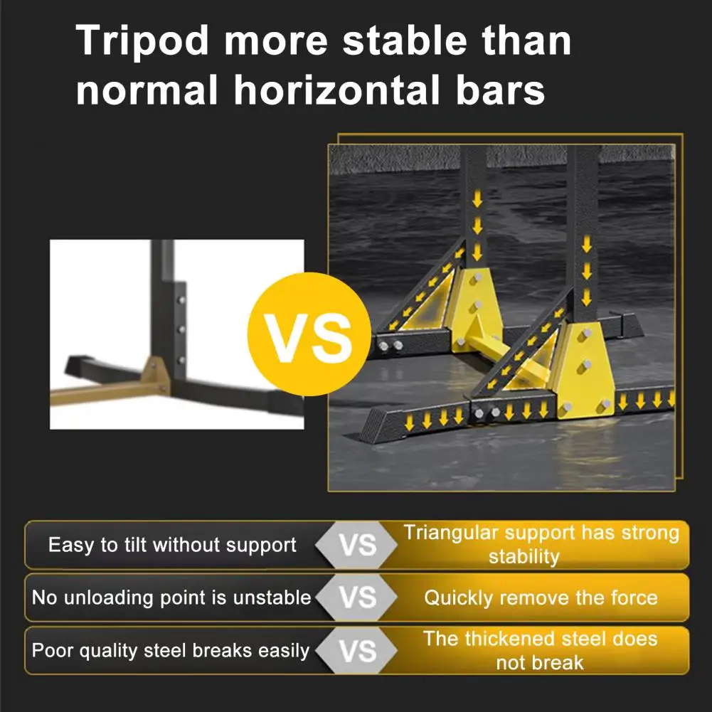 Multifunctional: A multi-functional power bar that supports vertical knee raise, push-ups, Chin-ups, dips as well as pull-ups, which help tone and target your muscles, arm, core, shoulders, chest, leg muscles, and back for a stronger body.
