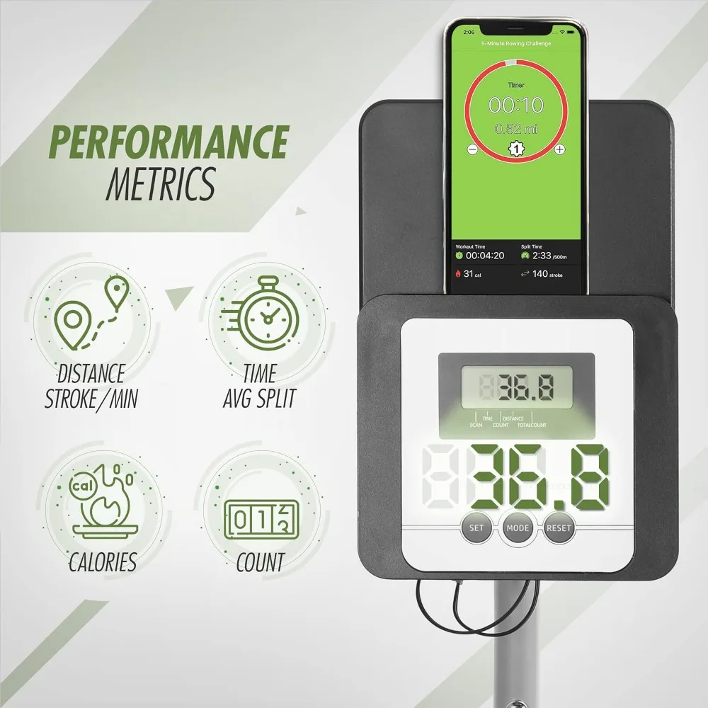 - EASY SETUP Bluetooth connection with Fitness App for iOS & Android (**NEW UPDATE** sync with Apple Health, Google Fit & Fitbit) to track your performance and keep you motivated. EASY LOGGING of your rowing workout data including 500 meter split time and stroke per min, and viewing your accomplishments with intuitive dashboard.