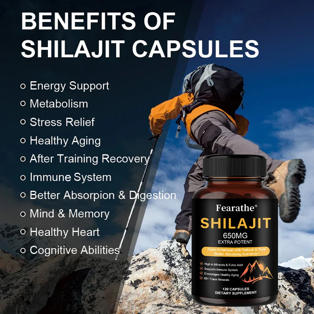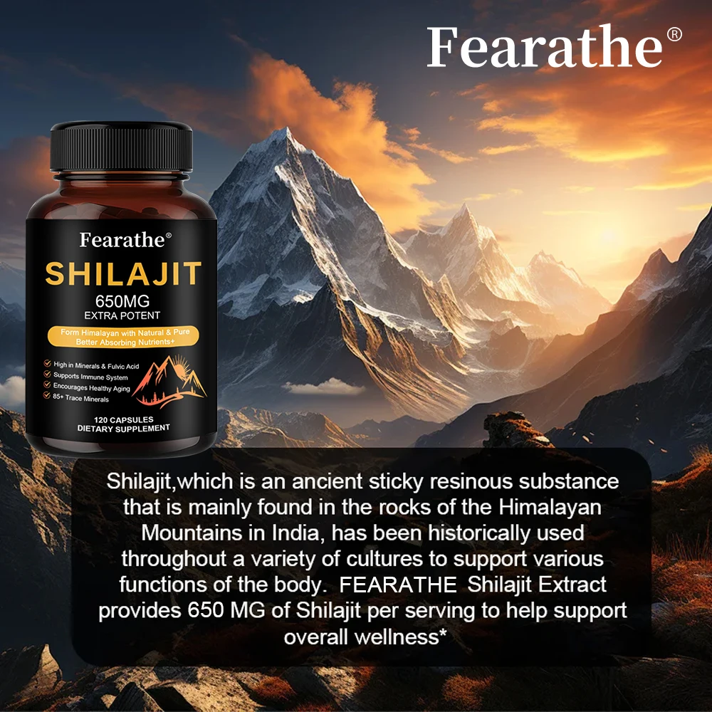 PURE HIMALAYAN SHILAIJI RESIN: Fearathe's Shilajit Resin is sourced from the unspoiled highlands of the Himalayas. It emanates naturally from ancient rocks, guaranteeing unmatched quality and authenticity. Experience the potency and purity of an ancient Ayurvedic treasure from the Himalayas, where every drop contributes to your attainment of truly extraordinary wellness.