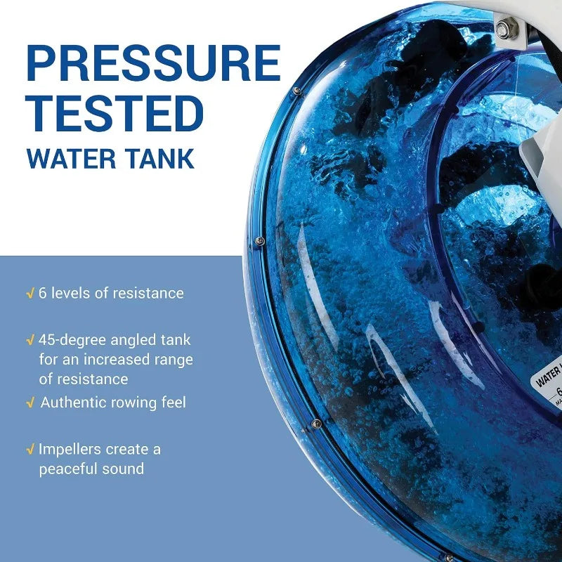 - 45-degree angled water tank and 16-blade impeller provide a realistic and relaxing rowing experience in the comfort of your home