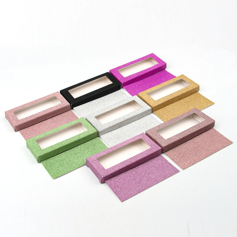 Packing: Lashes+plastic tray + silver glitter bottom + cove.