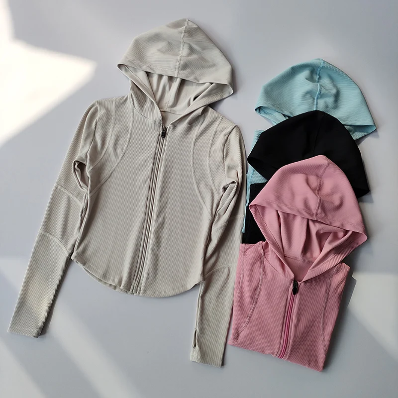 Women's Hooded Yoga Jacket Long Sleeve Sport Coat for Running Gym Leisure Wear Workout Clothing